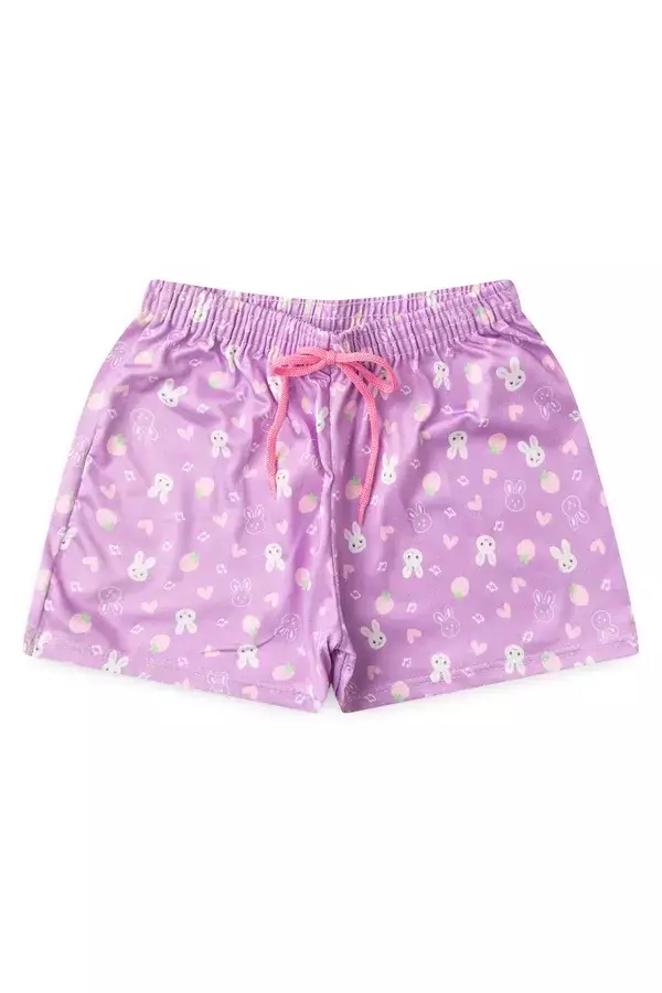 Shorts em Suplex estampado, elástico no cós e cordão decorativo.